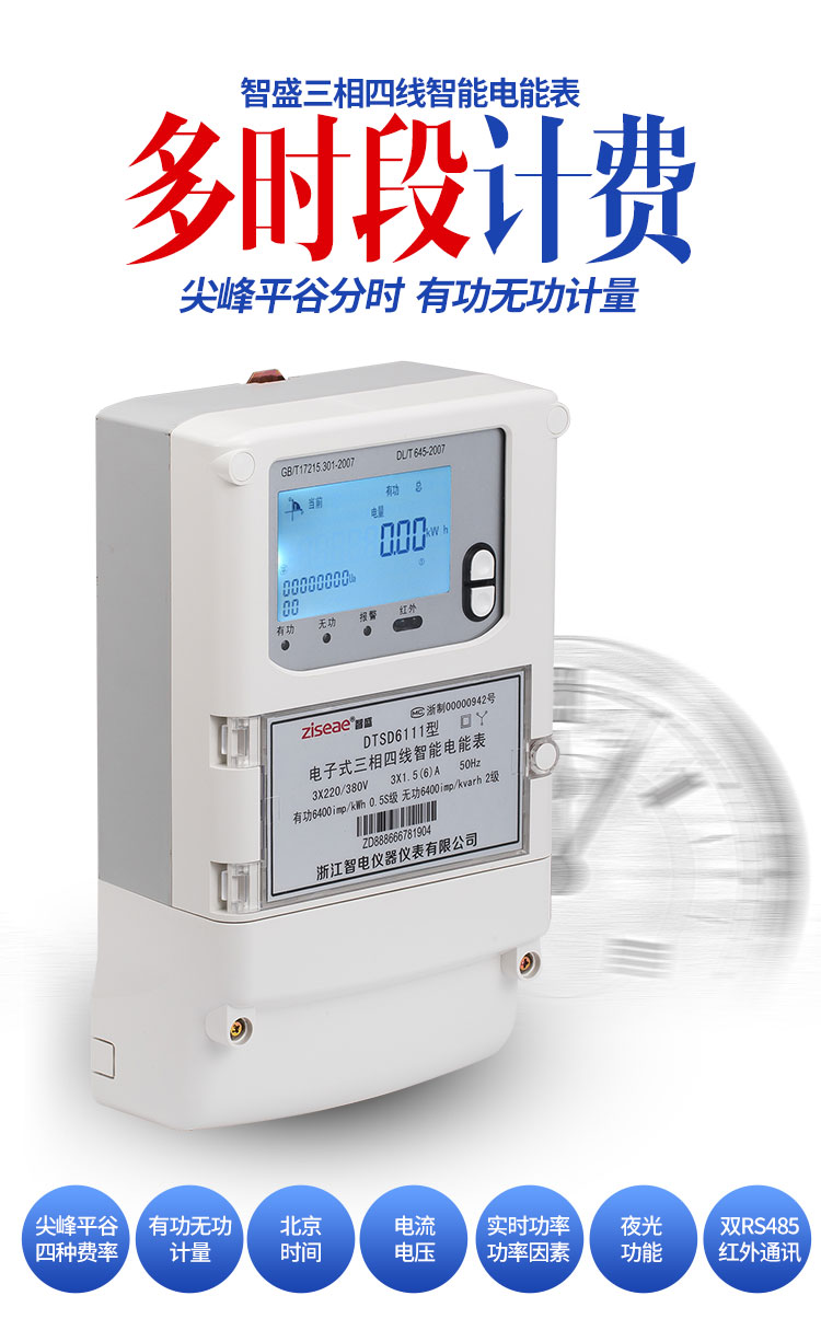 三相多功能電能表能夠精確地計(jì)量正向有功電能、反向有功電能,且可以實(shí)現(xiàn)分時(shí)計(jì)費(fèi)的功能。電能表采用液晶顯示,具有紅外和