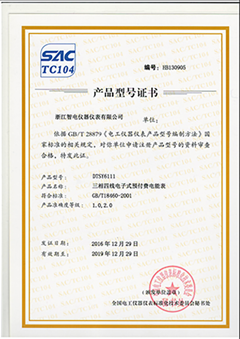 DTSY6111產品型號證書