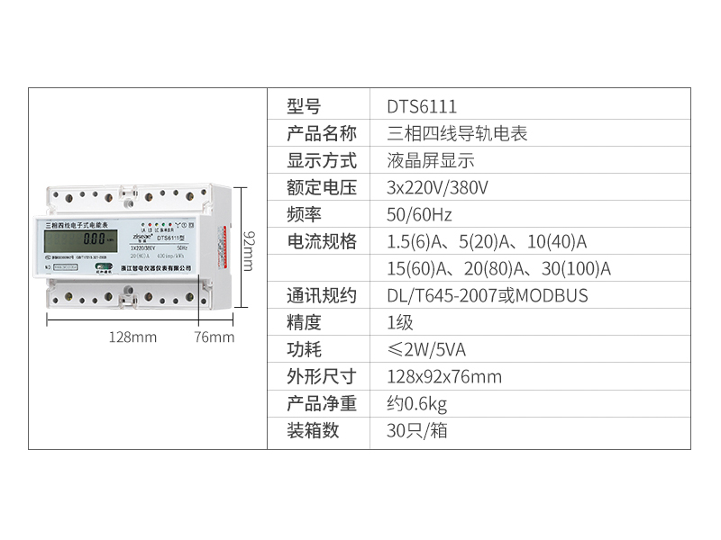 型號:DTS6111-7三相導軌式電表(RS485)