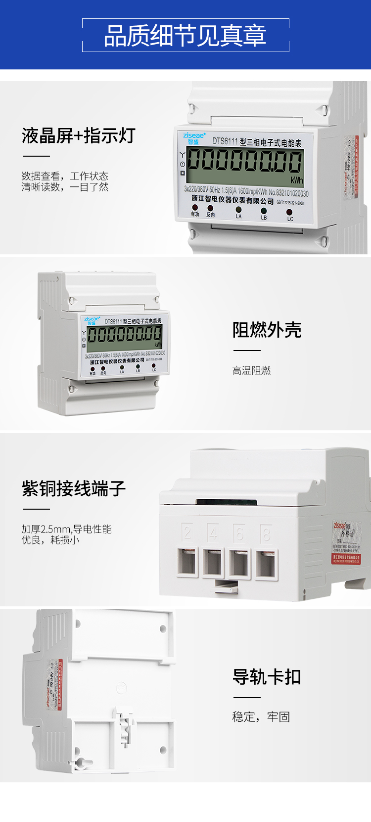 DTS6111、DSS6111型4P三相導軌式電能表(單顯電量)