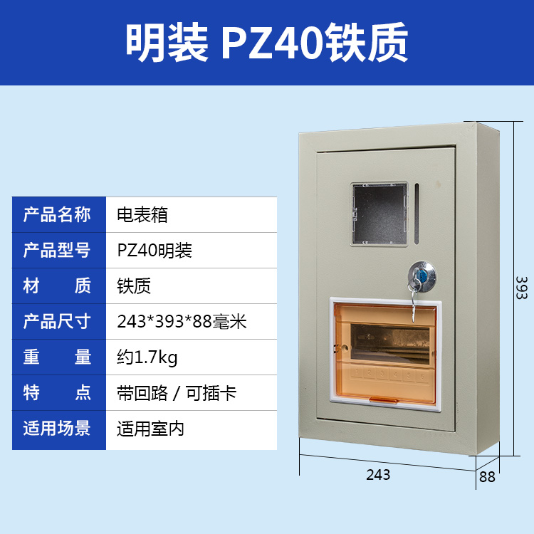 PZ40單相電表箱 鐵質(zhì) 1戶 明裝