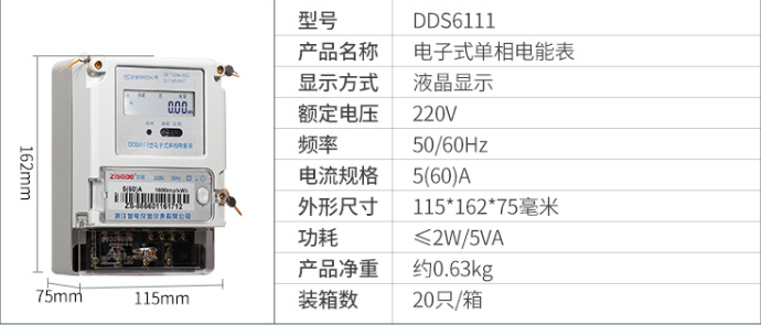 DDS6111單相電子式電能表是采用集成電路,16位A/D轉換、數字乘法器、應用數字采樣處理技術及SMT工藝,根據工業用戶實際用電狀況所設計、制造的儀表。該表采用獨立計量模塊能準確地測量單相有功電能。計量誤差穩定性強。